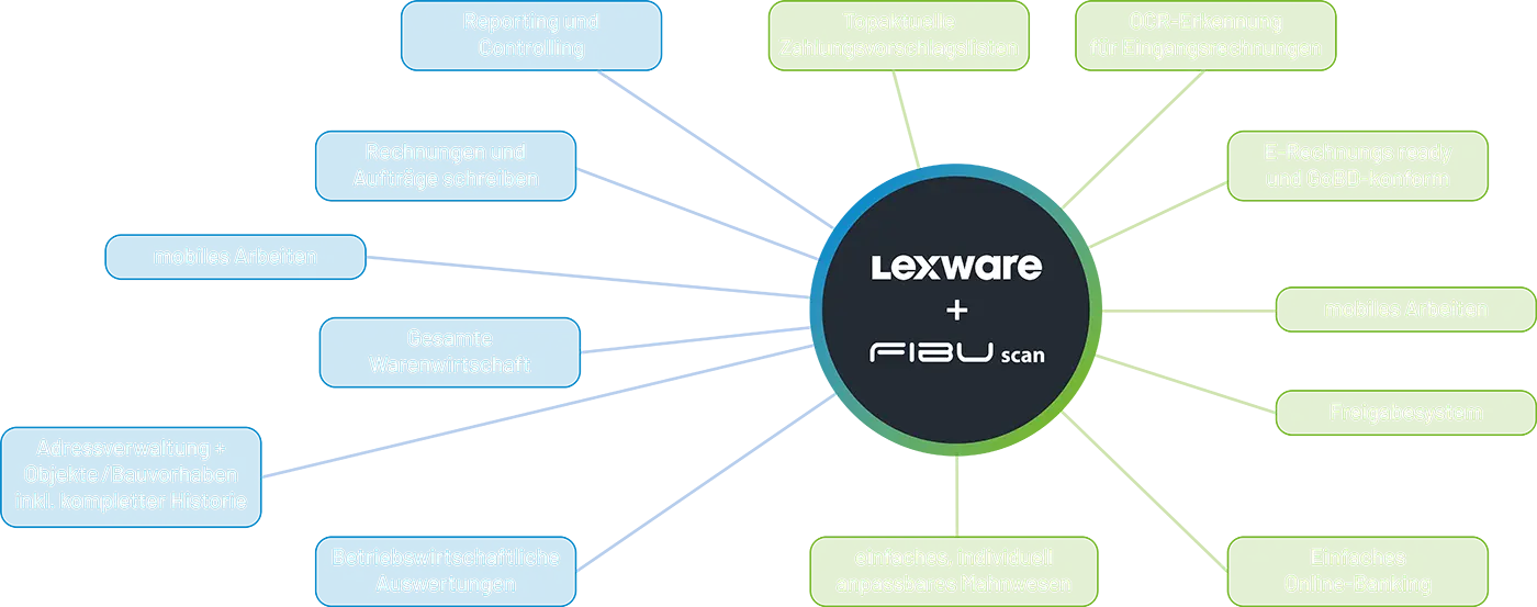 Einen tagesaktuellen Überblick über Außenstände und Verbindlichkeiten wird in FIBUscan dargestellt – und das vollständig integriert in der Kunden- und Objekthistorie in LEXWARE!