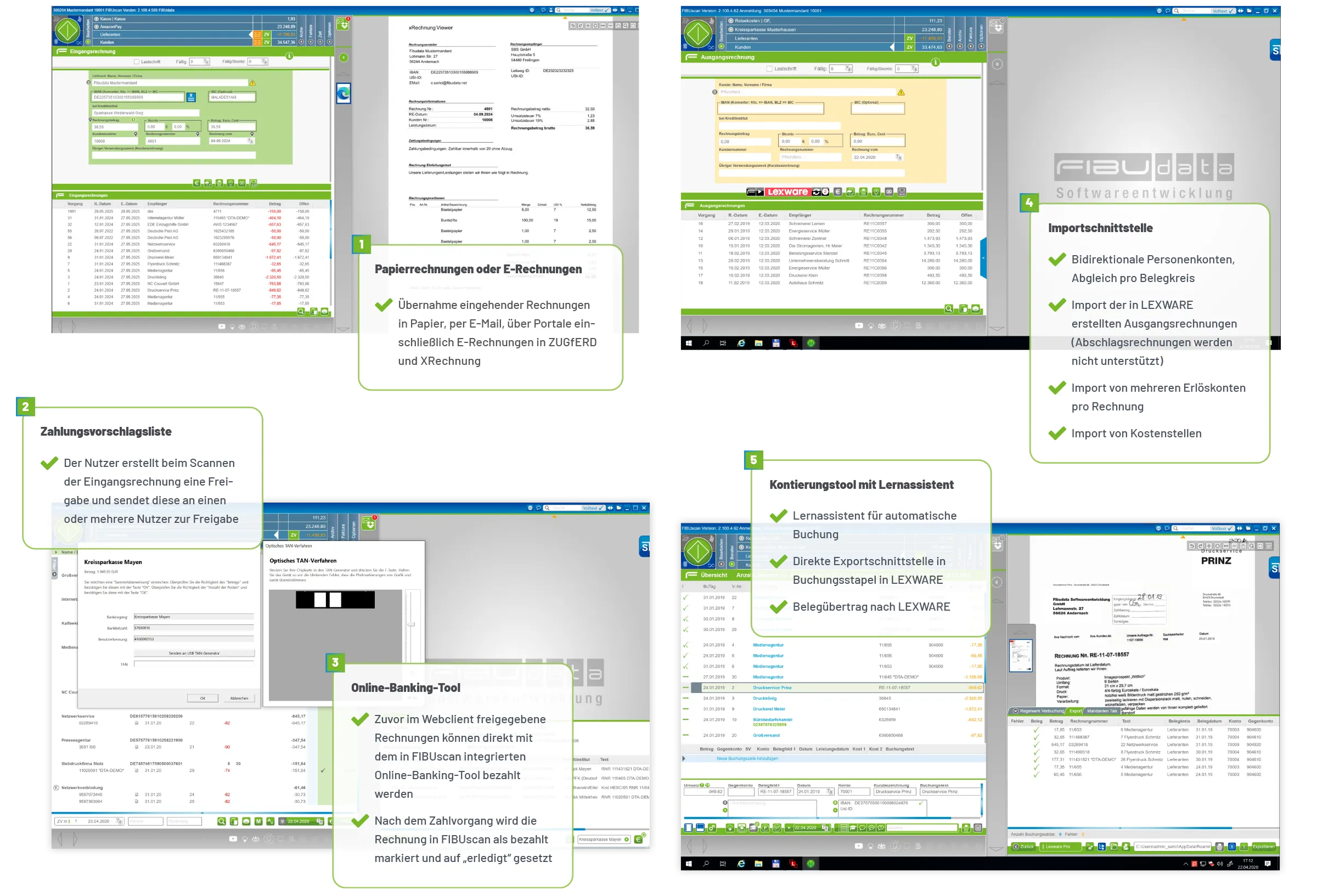 Lexware ist die Grundlage für eine professionelle Warenwirtschaft und Buchhaltung. FIBUscan erweitert Lexware On-Premise-Lösungen um die digitale Rechnungsbearbeitung und Dokumenten-Management-System – so einfach wie noch nie. So entsteht eine durchgängige, automatisierte Belegverarbeitung. Die digitale Belegerfassung, eine komfortable Verbuchung sowie das integrierte Online-Banking beschleunigen und vereinfachen die tägliche Büro- und Buchhaltungsarbeit spürbar.